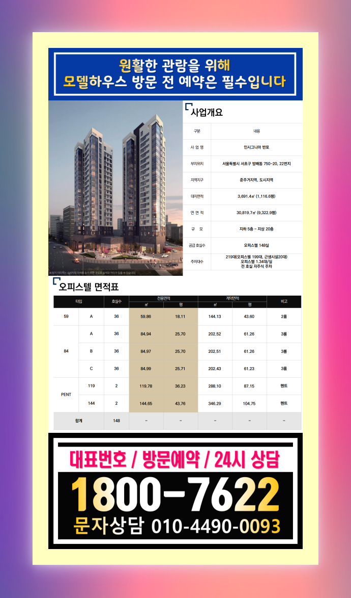 인시그니아 반포 분양가 서울특별시 서초구 방배동 서울 서초 방배 오피스텔 분양 미분양 계약조건 대표번호 평면도 평형
